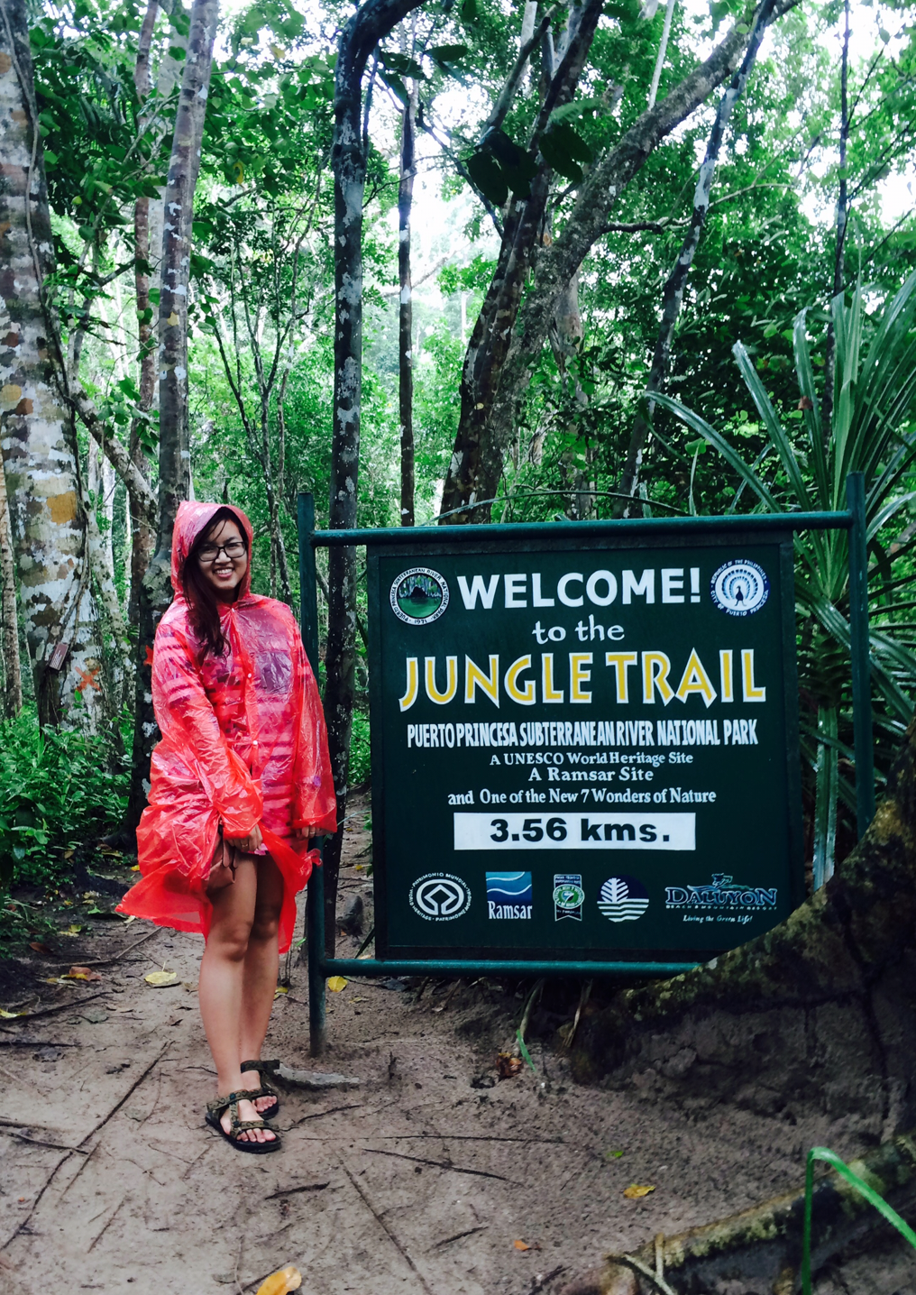 Xe đón tận hostel, đi khoảng 2 tiếng thì đến nơi, mình có nói chuyện và chơi với 1 nhóm 4 bạn cùng đoàn. Trời vẫn mưa, gió vẫn giật, anh hướng dẫn viên bảo mưa lắm đường trơn lắm nguy hiểm lắm, đã đi rồi thì ko rút đc mà chấn thương thì sau ít nhất 1.5h mới có cứu hộ, có chắc là đi ko?! Lúc đấy cả 5 đứa định thôi rồi vì đi flipflop mà leo thì chết chắc ;__;. Khi còn 5p xuất phát thì 4 đứa đổi ý, kiểu đã đến thì ko bỏ đc ý nên chạy ra mua áo mưa sandal các kiểu để leo bất chấp.